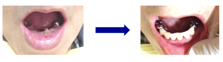クラウンやブリッジを入れると、見た目は元通りになりますので、